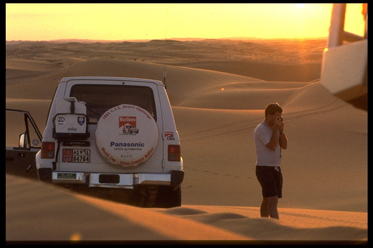 About me Hi my name's Jon Harbour. I live in Abu Dhabi in the United Arab Emirates and I work in the computer division of ADMA-OPCO, the off-shore oil company for Abu Dhabi. This picture was taken on a weekend camping trip in the Empty Quarter, a desert roughly the size of France. My friends and I go out dune driving most weekends during the winter. We might be crazy, but we're not stupid enough to do this in the summer, when the temperature reaches up to sixty degrees celcius ! | ||